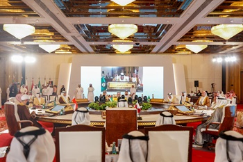 At the beginning of his speech, His Excellency the GCC Secretary General expressed his deepest gratitude and appreciation to His Highness Shaikh Tamim bin Hamad Al Thani, the Amir of the State of Qatar who is the president of the current session of the Supreme Council of the GCC, for the sincere and dedicated efforts exerted by the Government of the sisterly State of Qatar in managing and ensuring the success of the joint GCC meetings during its presidency of this session. He wished the State of Qatar continued progress, advancement, and prosperity under the wise leadership of His Highness.